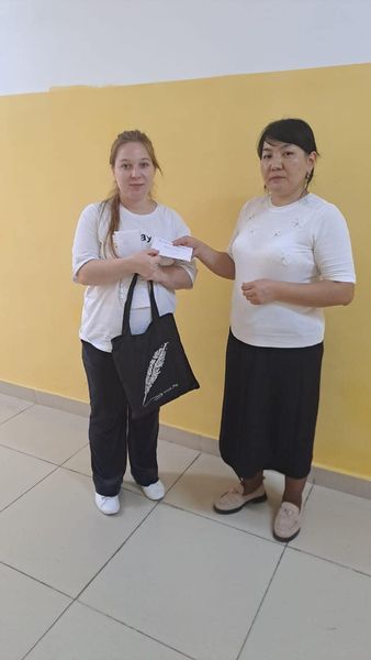 2. Қазақ тілі пән мұғалімі Ахмет ф 15000 теңге , бастауыш сынып мұғалімі Ашахова Диана 5000 тенге, және де Құрақбаева Күлайхан апайымыздың ұлы Самат демеушілік көмек көрсетіп , кеңсе заттары салынған сөмкені 3«В» сынып оқушысы Шаповалов Сергейге ұсынып , балалардың мерейін үстем етті . Демеушілермізге алысымыз шексіз .