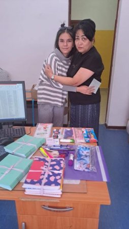 1.Мектебіміздің түлегі, студент Сейдилабек Меруерт өзінің шәкіртақысына кеңсе заттарын алып , 7 «б» сынып оқушысы Караева Гүлнұрға табыстады.